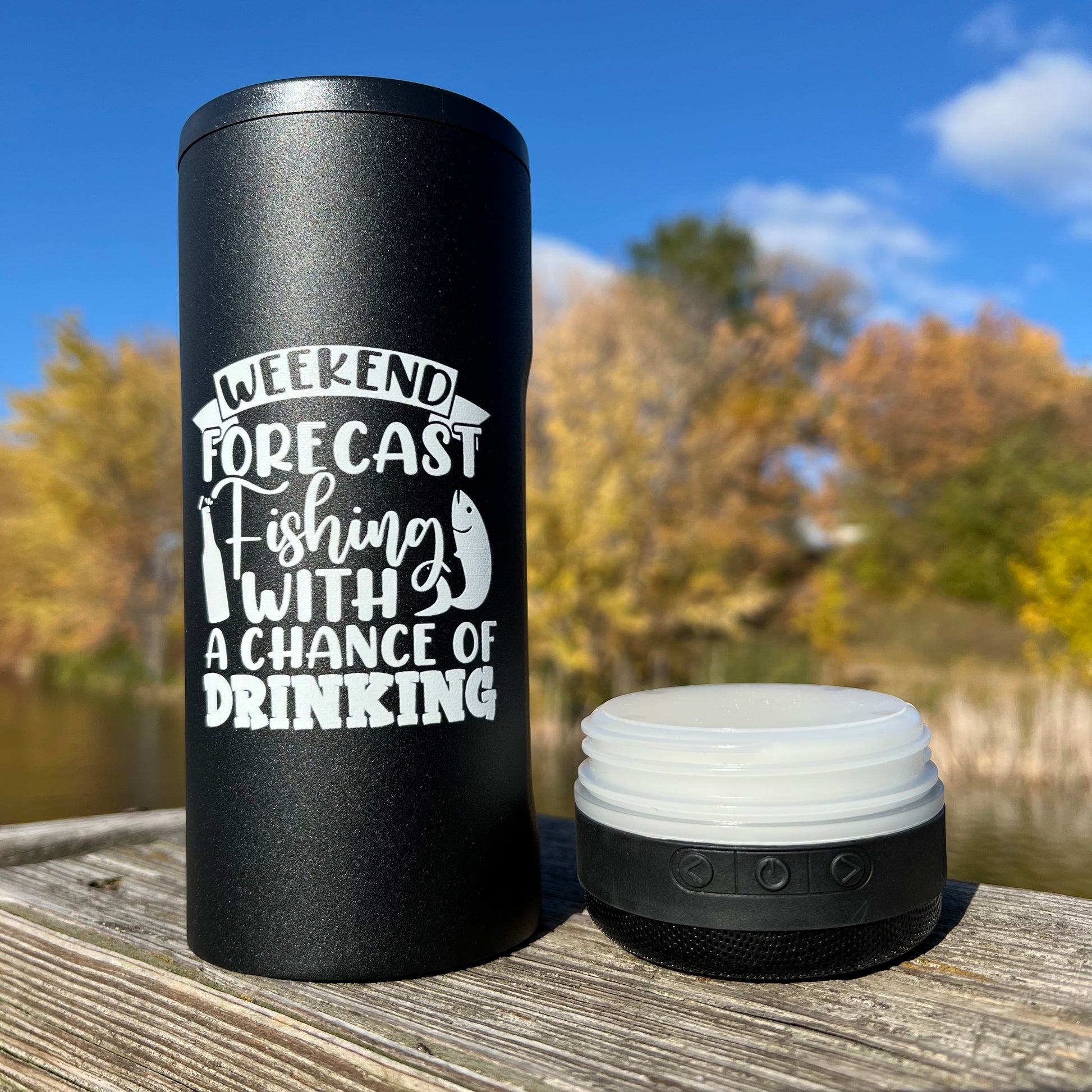 There can be quite a bit to pack and prep for a weekend fishing trip, but with The Bump'n Brew 2in1 koozie, there is one less thing to worry about packing in the tackle box. Not only can you fish without worrying about your traditional speaker getting wet, or even falling out of the boat or kayak, you already got your new favorite koozie handy as well!